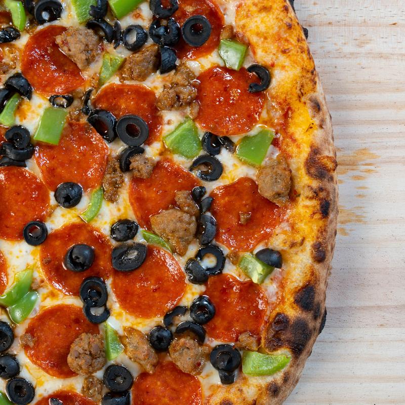 10" $23.00 | 14" $30.00 • Red sauce, mozzarella, pepperoni, sausage, green pepper, and black olives