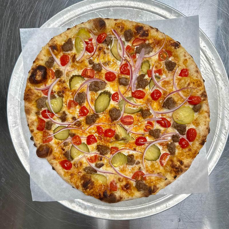 10" $23.00 | 14" $30.00 • BBQ chipotle sauce, Swiss cheese, impossible meat, grape tomatoes, red onions, and pickles