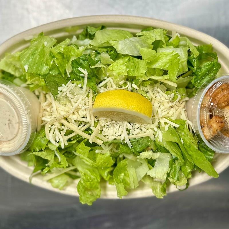 Romaine lettuce, parmesan cheese, fresh lemon, croutons, and Caesar dressing